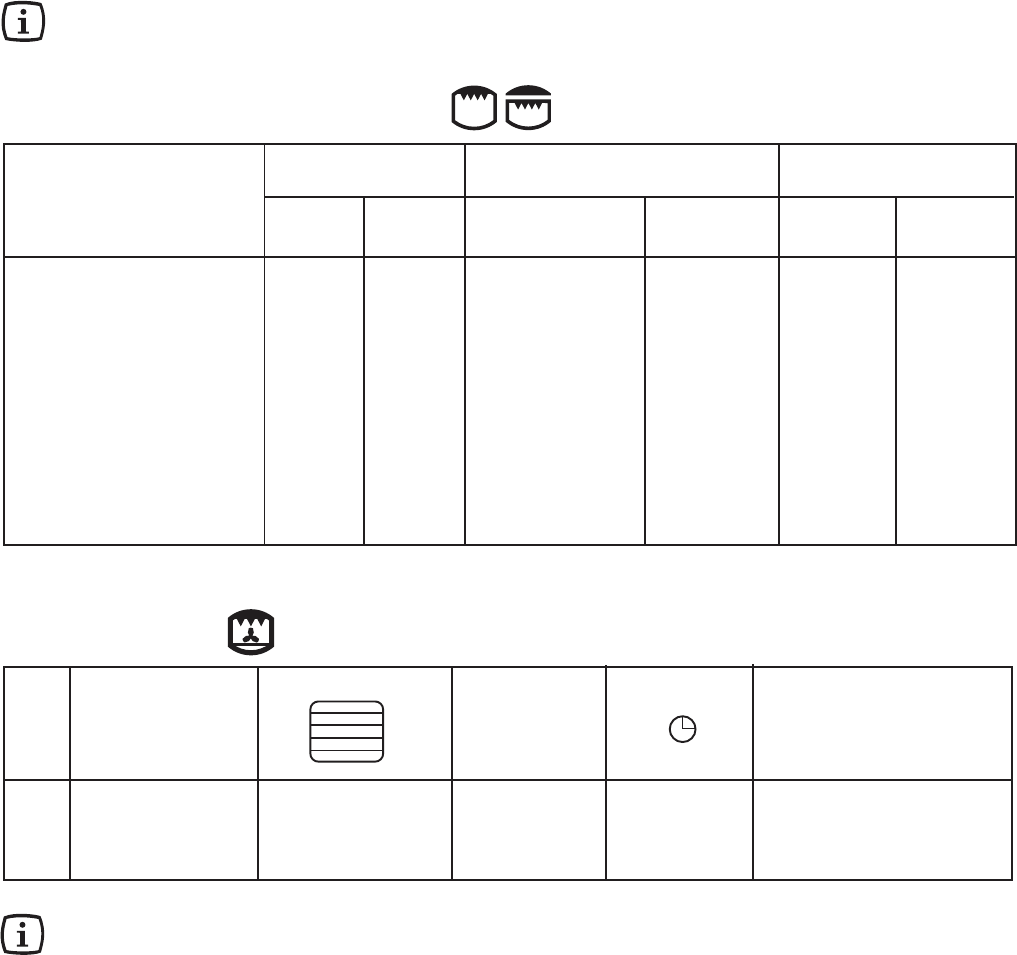 Les températures du four ne sont présentées qu’à titre indicatif. Il pourra s’avérer nécessaire d’augmenter ou de